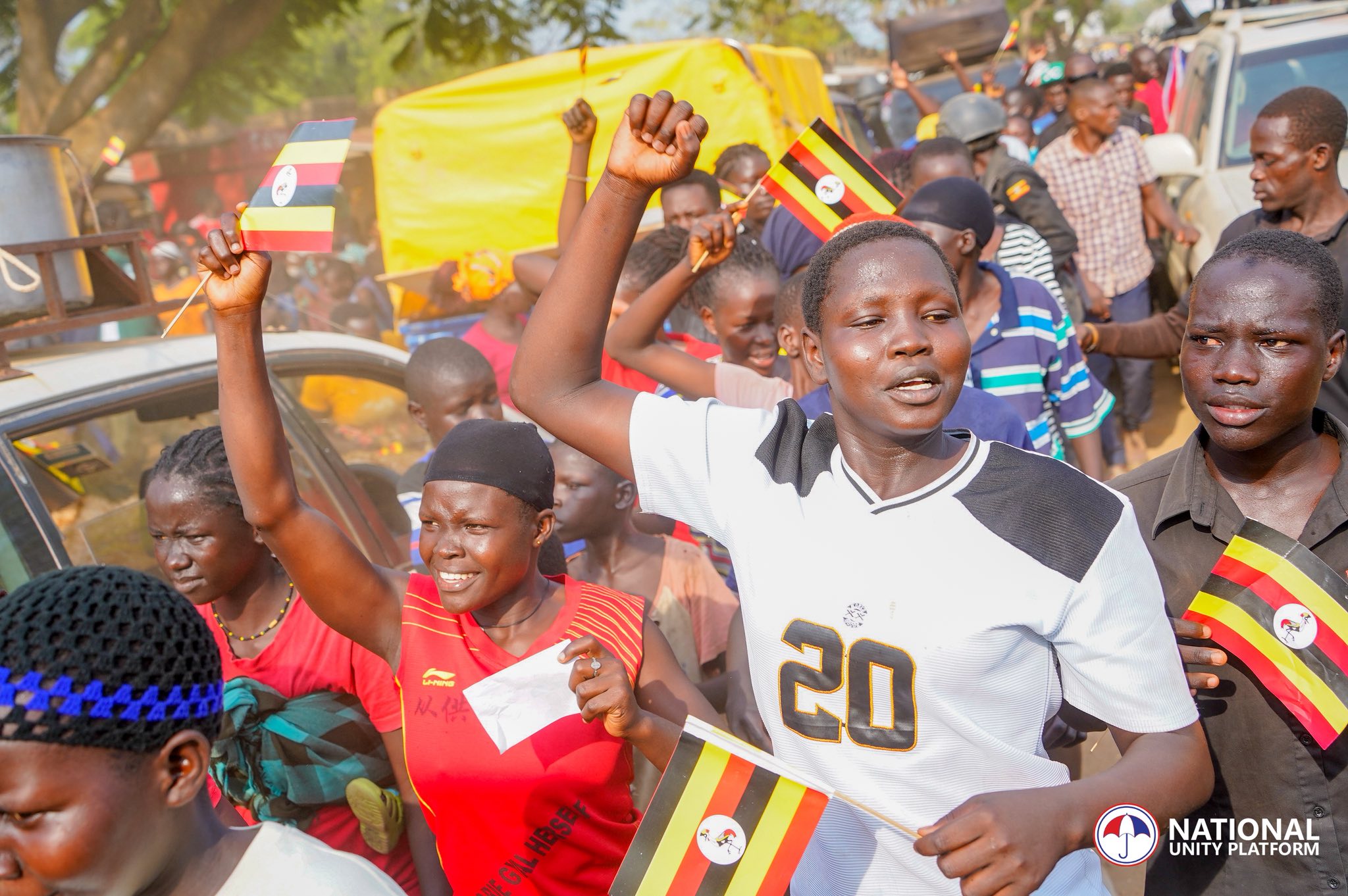 A young mother holding a small Ugandan flag summarizes the mood simply: “We want a country that listens to us.”