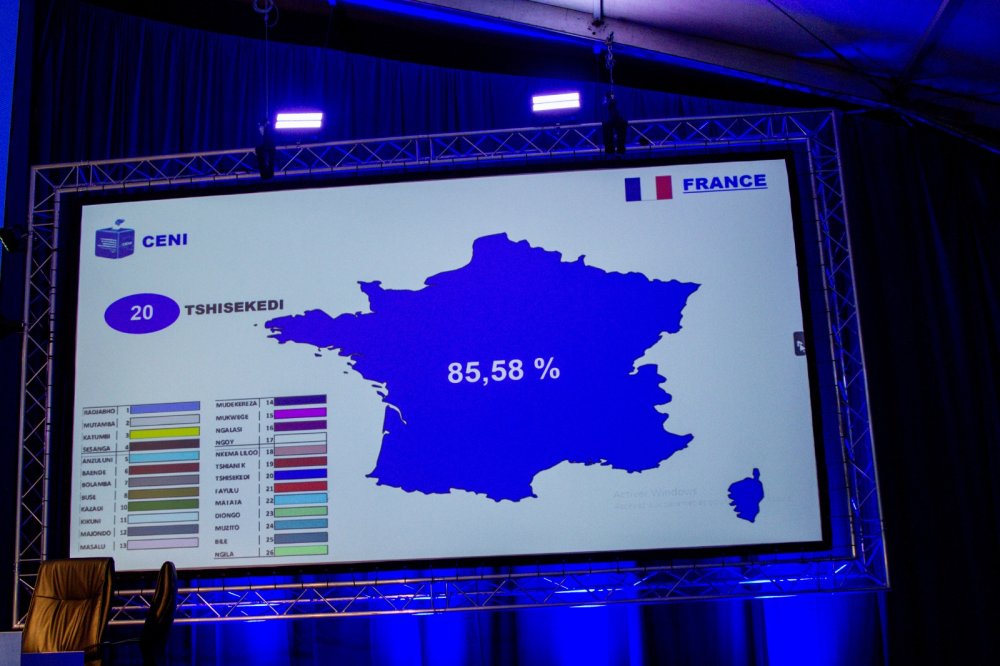 CENI yerekanye ko mu Bufaransa, Tshisekedi yagize amajwi 85,58%, agira 78,88% muri Leta Zunze Ubumwe za Amerika agira 72,33% muri Canada, 75,94% mu Bubiligi na 81,27% muri Afurika y’Epfo.