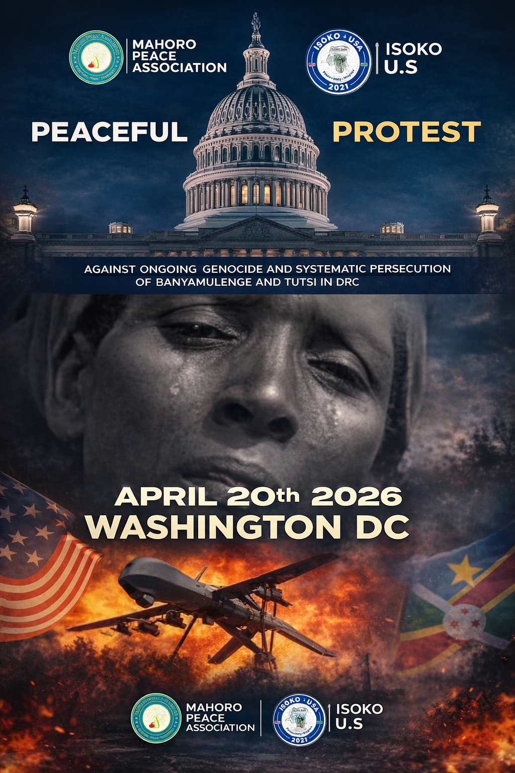 Mahoro Peace Association ifatanyije na Isoko U.S bateguye imyigaragambyo y’amahoro iteganyijwe ku wa 20 Mata 2026 i Washington DC, igamije kwamagana ihohoterwa rikomeje gukorerwa Abanyamulenge n’Abatutsi mu Burasirazuba bwa Repubulika Iharanira Demokarasi ya Congo (RDC).