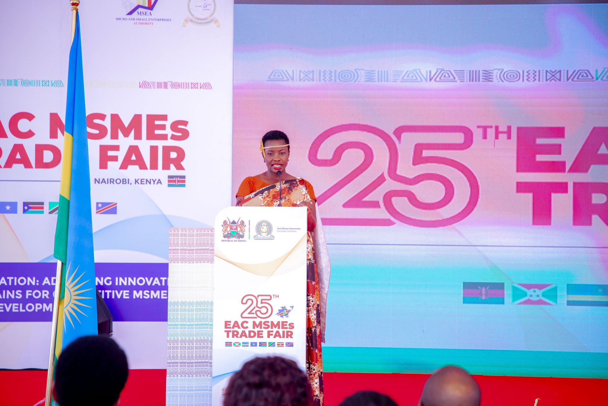 In his address, Rwanda’s High Commissioner to Kenya, Ernest Rwamucyo, commended the Government of Kenya for successfully hosting this year’s Trade Fair and applauded the EAC Secretariat for its coordination in bringing together thousands of regional exhibitors and stakeholders. He also recognized all Partner States for strengthening cooperation and enabling MSMEs to grow beyond national borders.